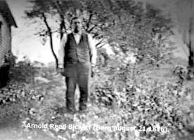 The WWI Draft Registration Card and Registrar's Report dated September 12, 1918, shows Arnold Reed Bickett was judged Mentally Deficient. The Registrar signed Arnold's name on the form. Medium Height and Stout Build. Mrs. George Bickett of Yellow Springs is his nearest relative. His employer is Center College, Yellow Springs, Greene Co., OH.