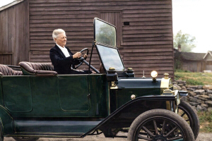 Emily (Gilby) Hardy and Victor Wilson, 1908. The car belonged to Dr. George Buckton Hardy, DDS., who was quite a remarkable man - first a teacher, then a dentist whose office was on Carlton St. opposite Maple Leaf Gardens in Toronto, then he retired and opened a Nursery and grew plants and flowers. His fiancée died during the plague epidemic, probably 1918, and his love life died with her. He had quite a zest for life, and traveled to England in 1900 by ship.