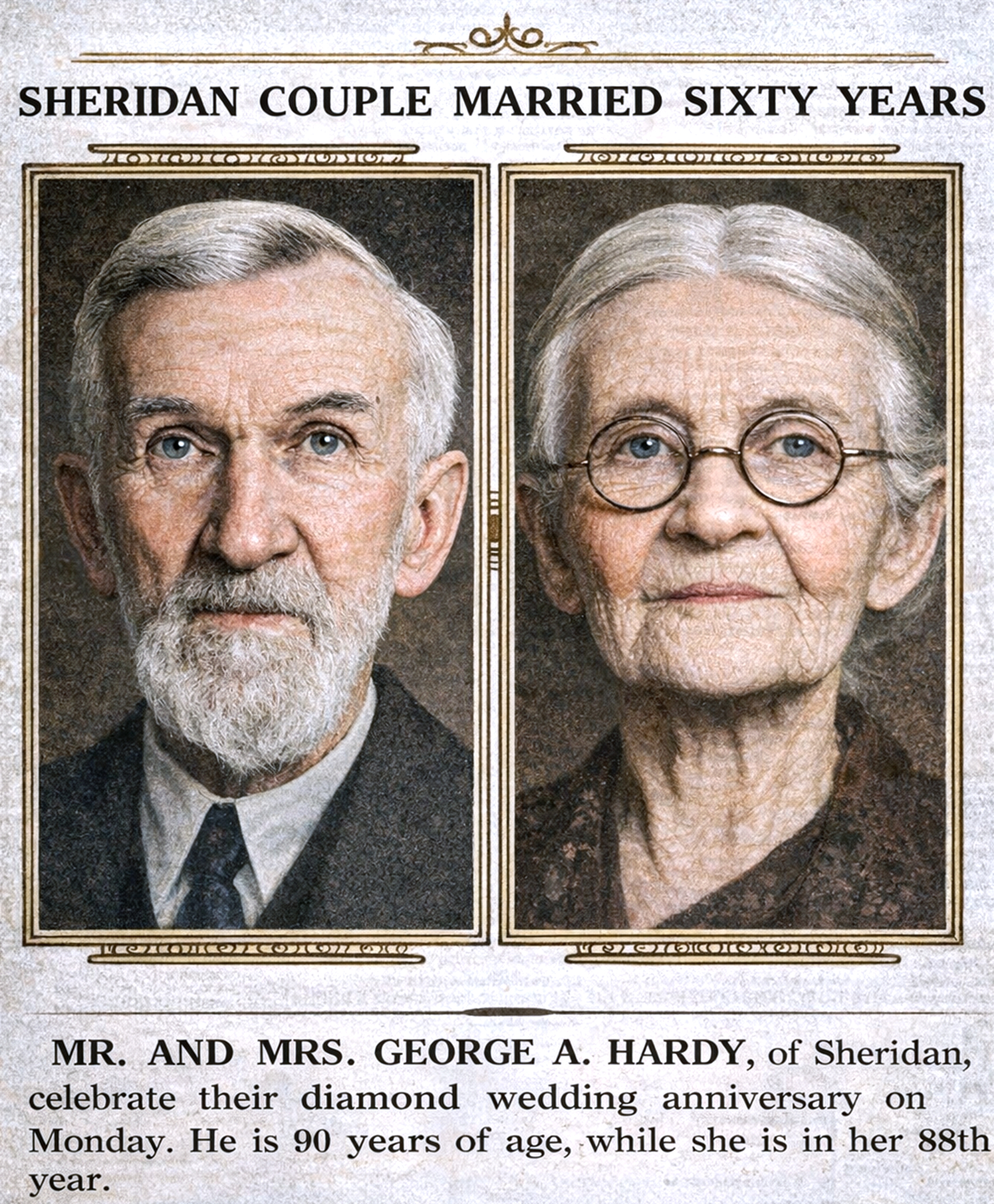 Sheridan Couple Reach their Diamond Jubilee With Faculties Unimpaired - Tell of Belated Honeymoon Due to Road Blockade