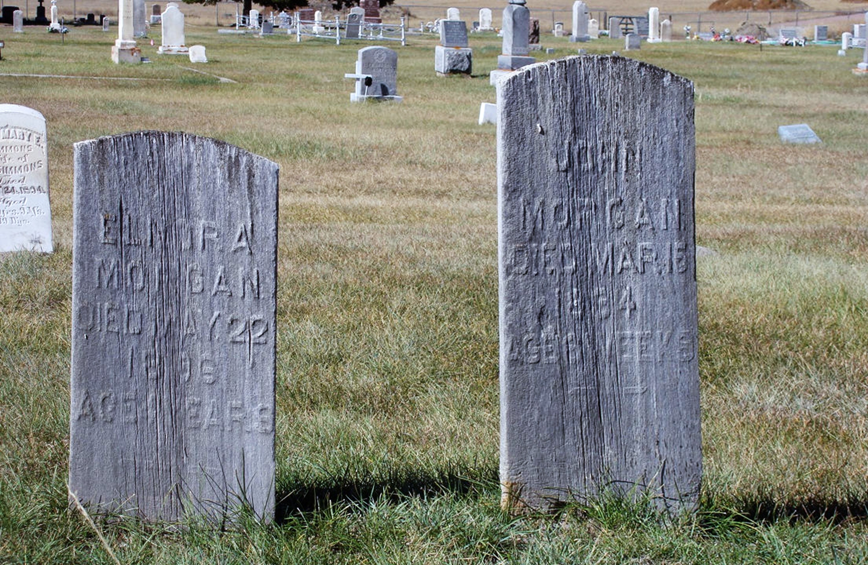 Elnora "Nora" Morgan and John William "Johnny" Morgan are buried in Missoula Cemetery, Missoula, Missoula Co., MT. The grave markers are made from wood.