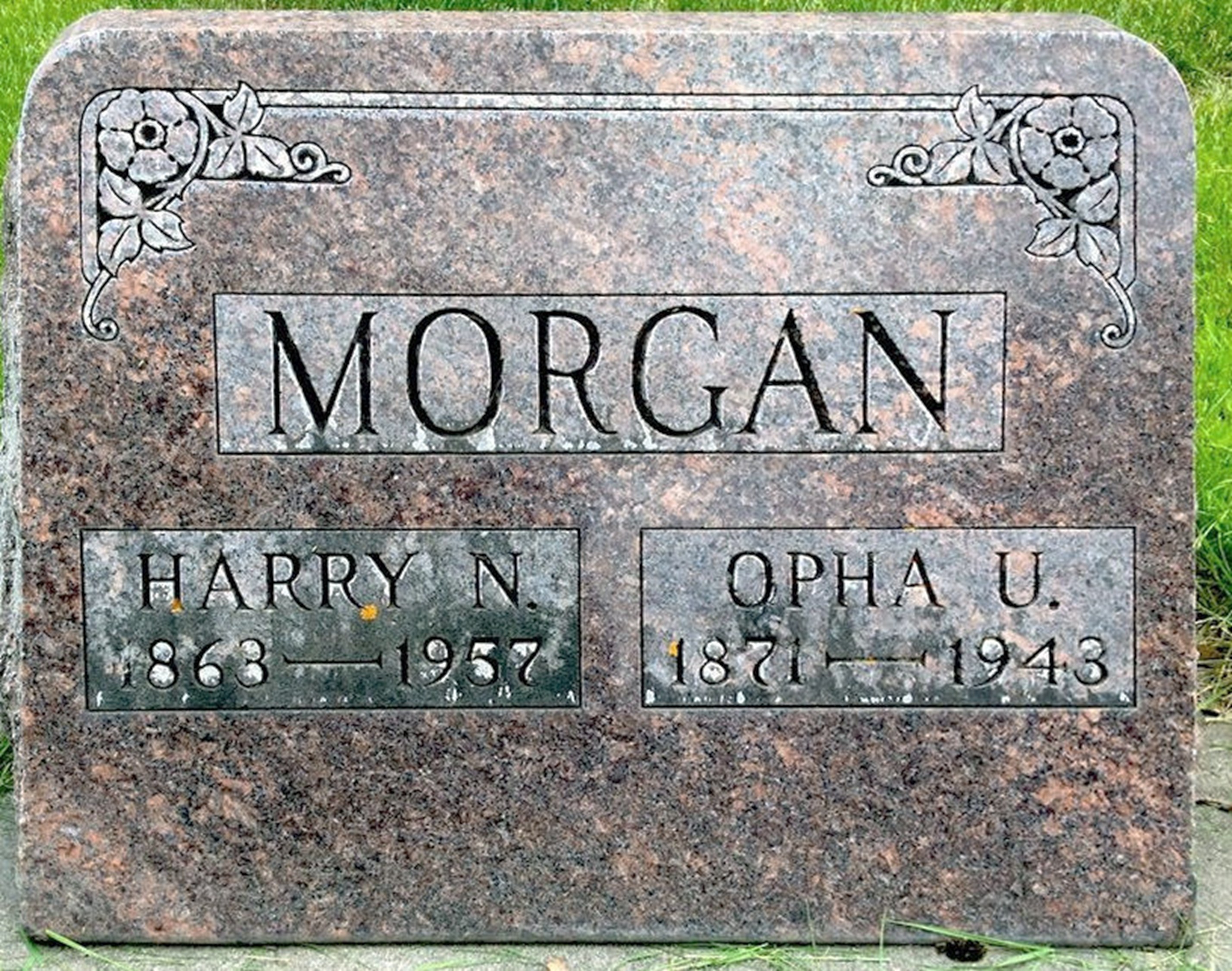 Henry Norton "Harry" Morgan and Ophia Ufrates "Opha" (Rider) Morgan are buried in Missoula Cemetery, Missoula, Missoula Co., MT.