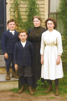 The 1910 U. S. Census taken on April 22, 1910, shows Harry N. Morgan (age 44) born in Montana to Missouri and Montana-born parents is a Forest Guard for the Government renting his home at 903 Cherry Street, Ward 1, Missoula, Hellgate Twp., Missoula Co., MT. Living with him is his wife of 25 years, Ophia M. Morgan (age 40) born in Nebraska to Kentucky and Nebraska-born parents, with 6 of the 8 children born to her still alive. Five of his children are living at home, all unmarried and born in Montana to Montana and Nebraska-born parents: Henry E. Morgan (age 23), an Odd Jobs Laborer; Mary D. Morgan (age 21), a Dressmaker at Home; Edna M. Morgan (age 15); Claude H. Morgan (age 10); and Ernest H. Morgan (age 7). Three Lodgers also live in the household.