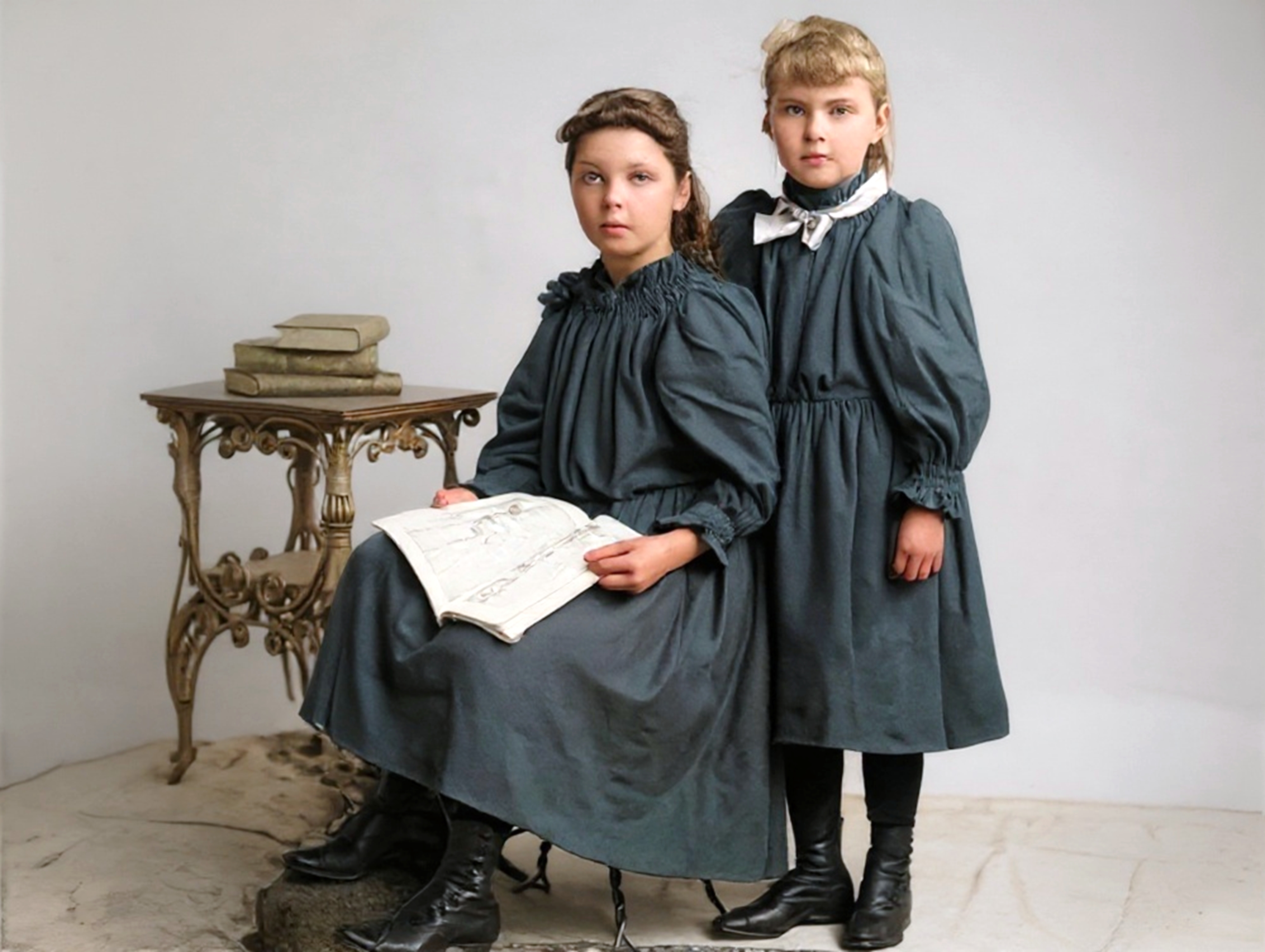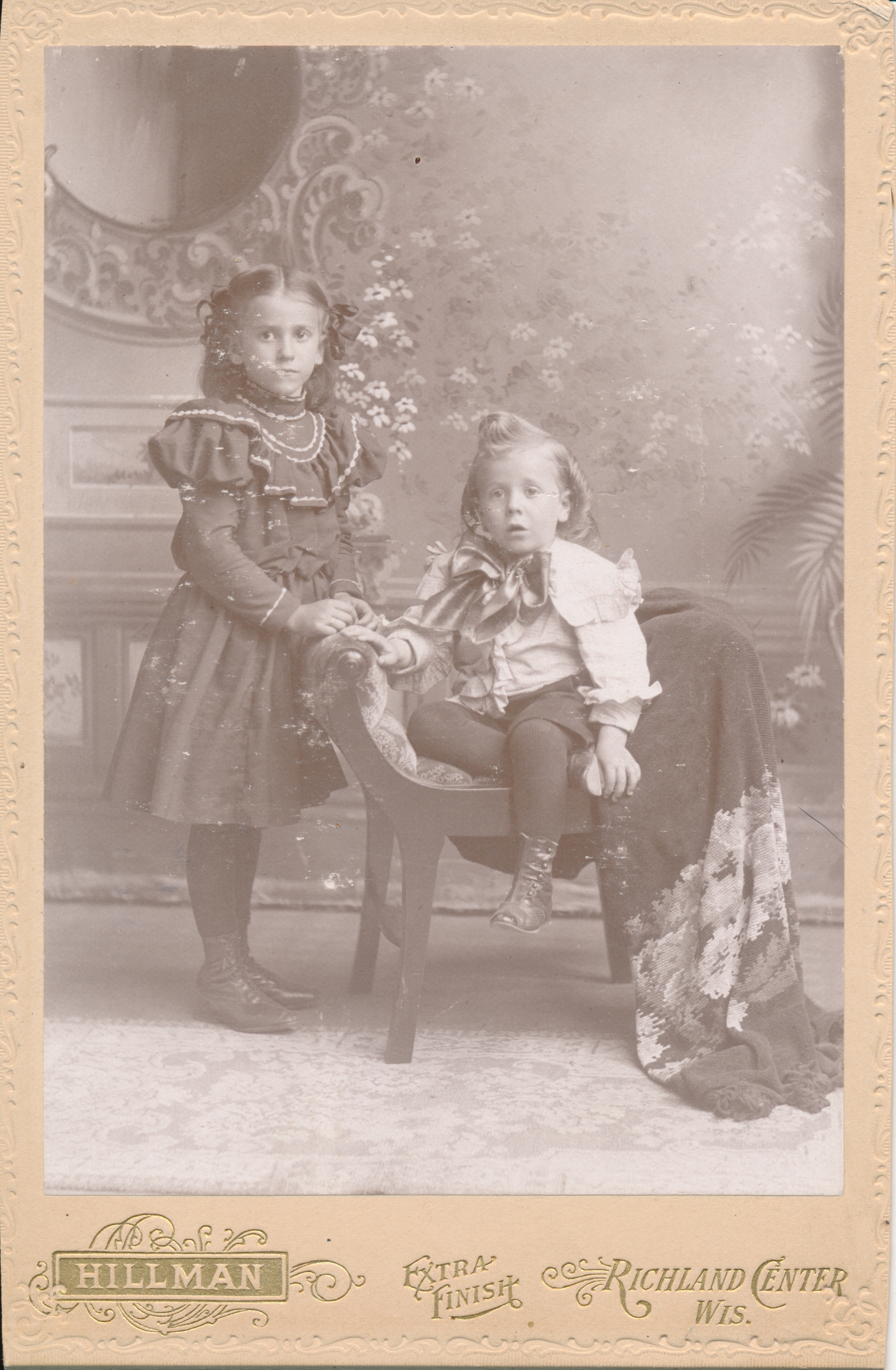 Alora M. "Laura" Mayfield Mayfield and Kathryn R. "Kittie" Mayfield, Richland Center, Richland Co., WI, about 1899. The William J. Hillman Studio, Richland Center, Richland Co., WI.