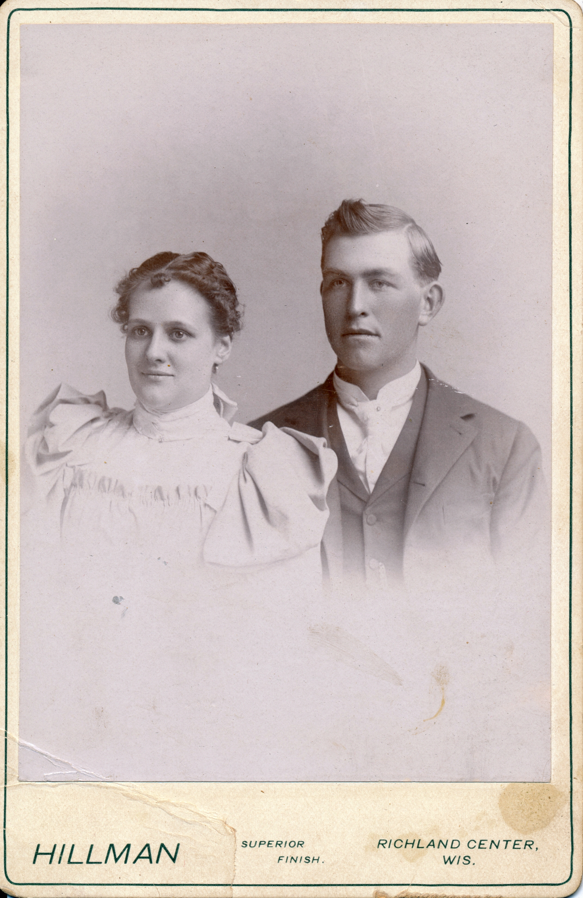 Iva May "Ivy" Abbey and Cyrus Lawrence Mayfield, Richland Center, Richland Co., WI, about 1920. Hillman Studio, Richland Center, Richland Co., WI.