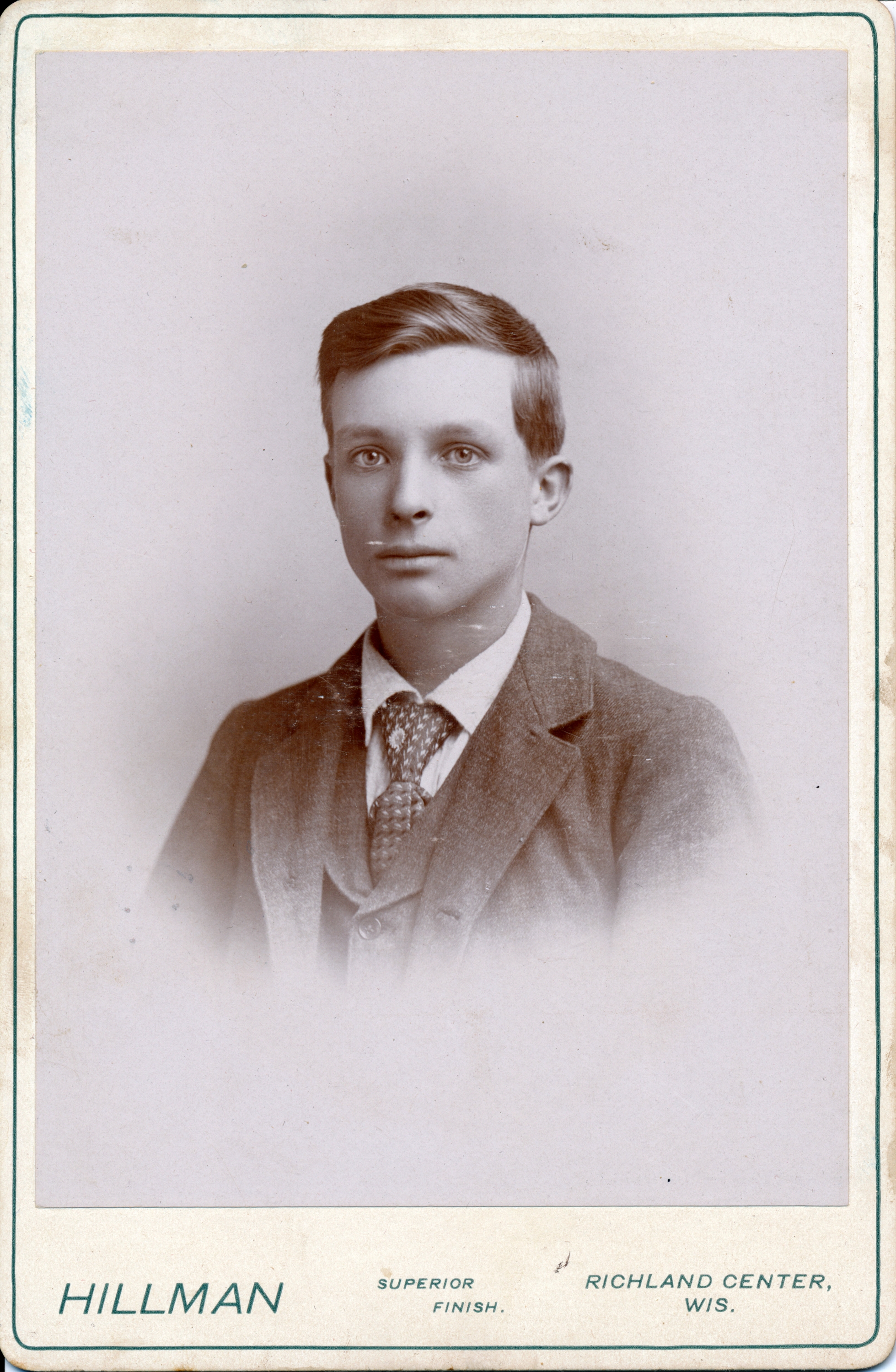 Cyrus Lawrence Mayfield, Richland Center, Richland Co., WI, about 1894. Hillman Studio, Richland Center, Richland Co., WI.