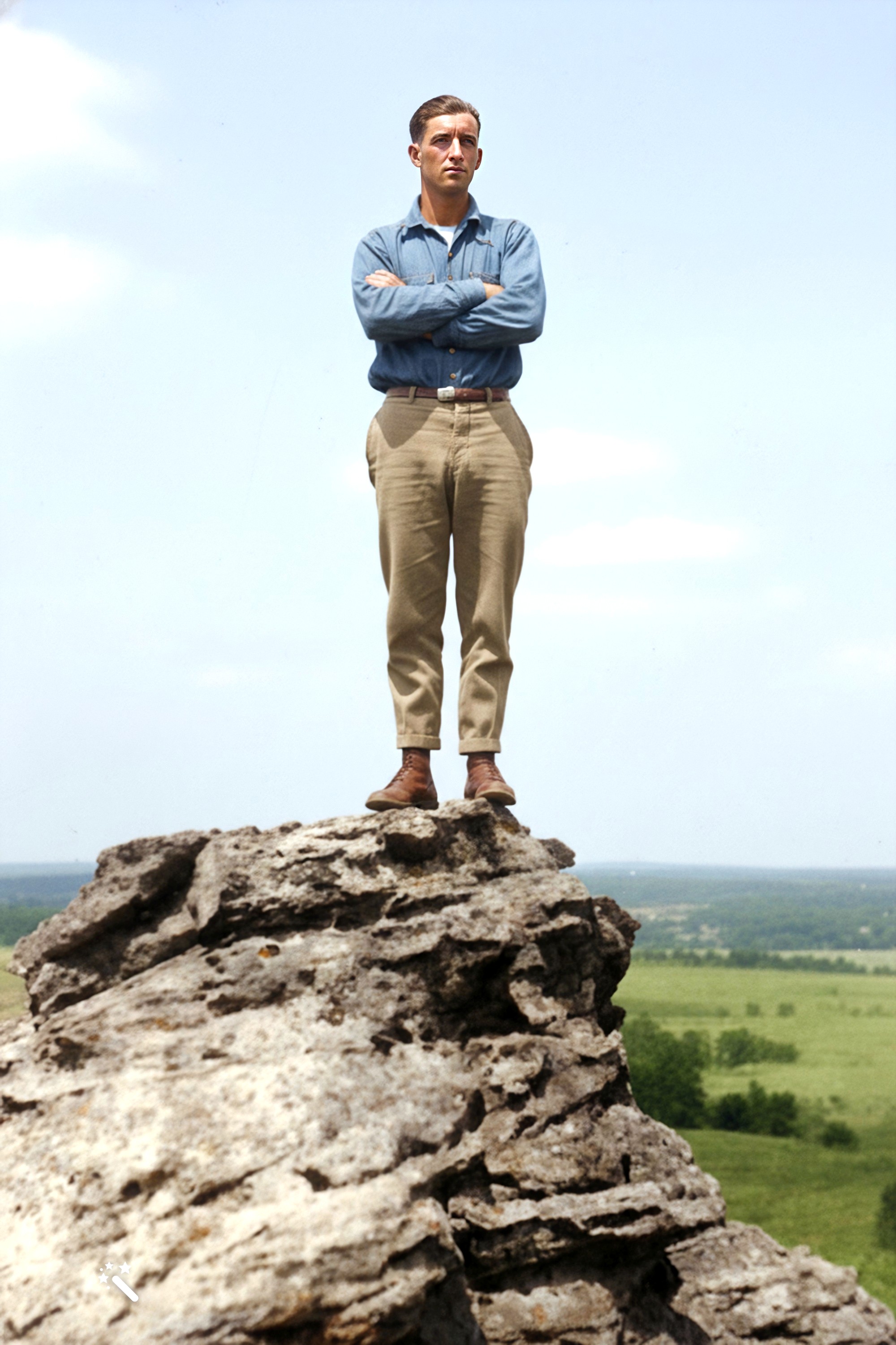 Kay Koslan comments: The rocks that are unfamiliar to where we live, unless you get into the Badlands. He looks a little younger so perhaps its when Jimmy and he had the escapade out West in 1923. Oran also worked for my great grandfather Charles Herman, before he married my grandmother, Alice. Charles didn't think Oran was good enough for her. Maybe because he didn't have enough money? But Oran worked a lot in my opinion - 2 jobs, etc to get ahead.