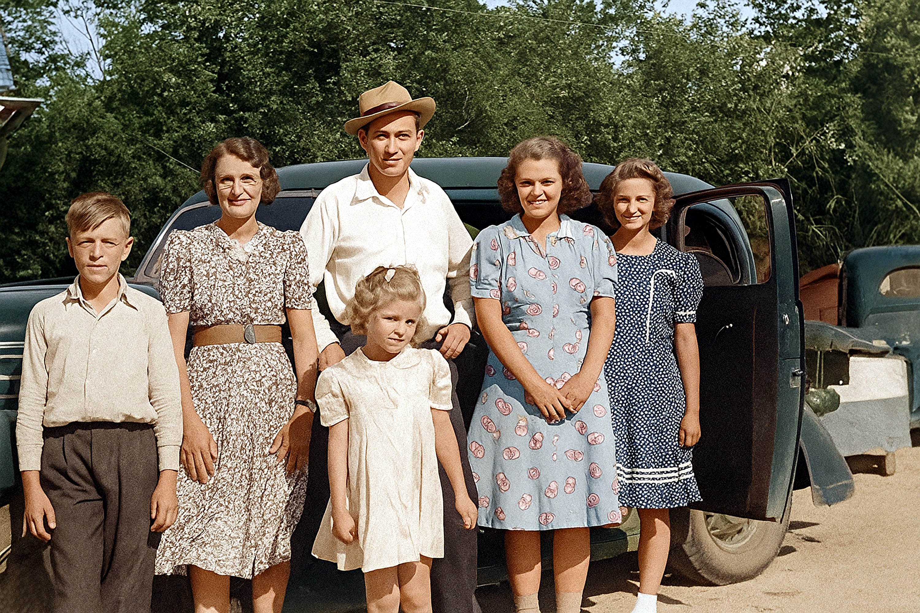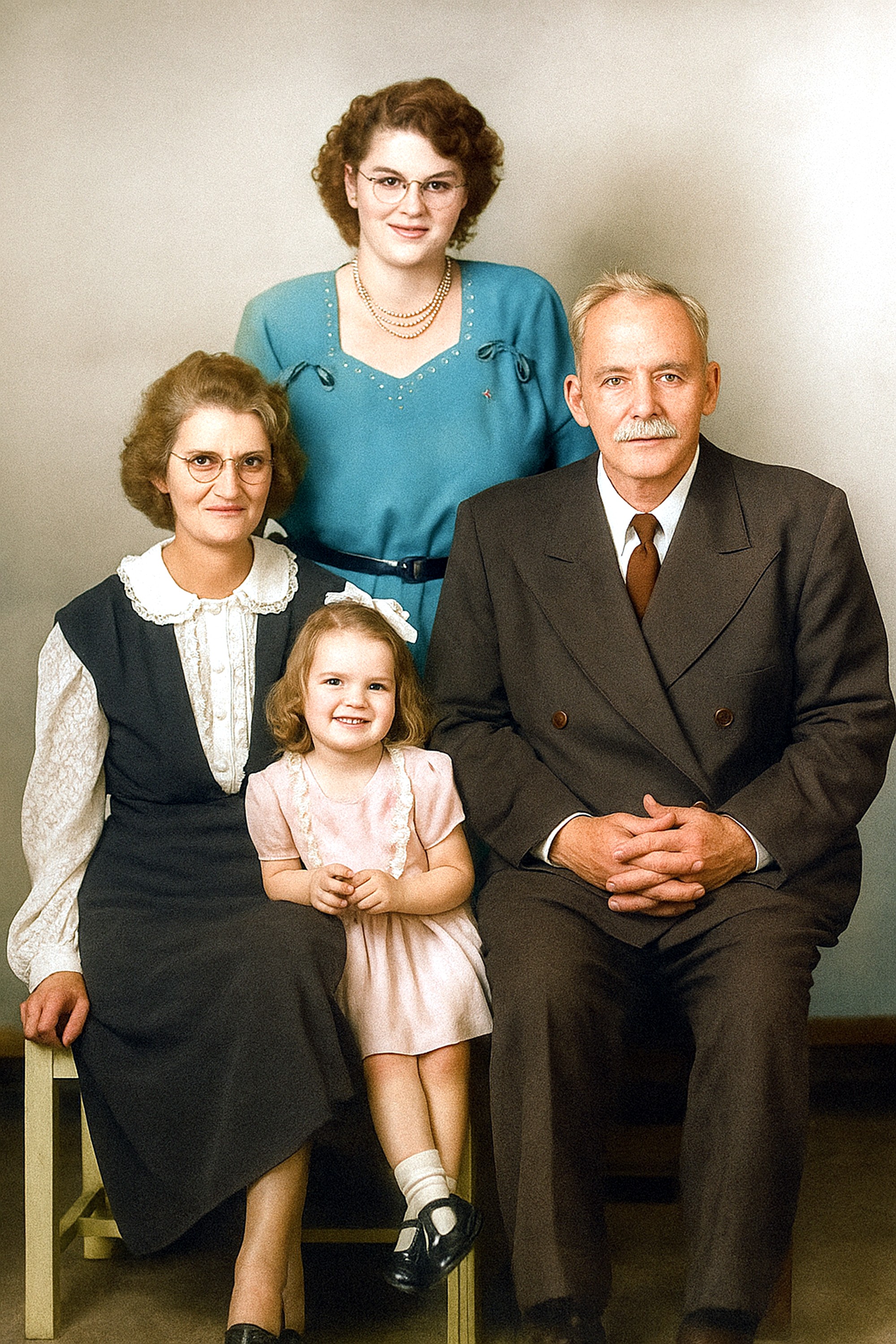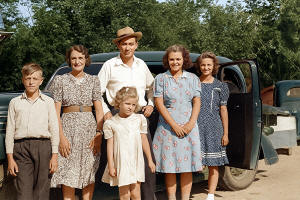 Charles Grant "Charley" Newman, his daughter Olive Mae (Newman) (Arvidson) Heggem, on the left, Olive Mae (Newman) (Arvidson) Callopy's daughter, Margaret L. Callopy (Johnston) Park, upper center, and her daughter, Irene M. Callopy, in the center. Year 1952 - 1956.