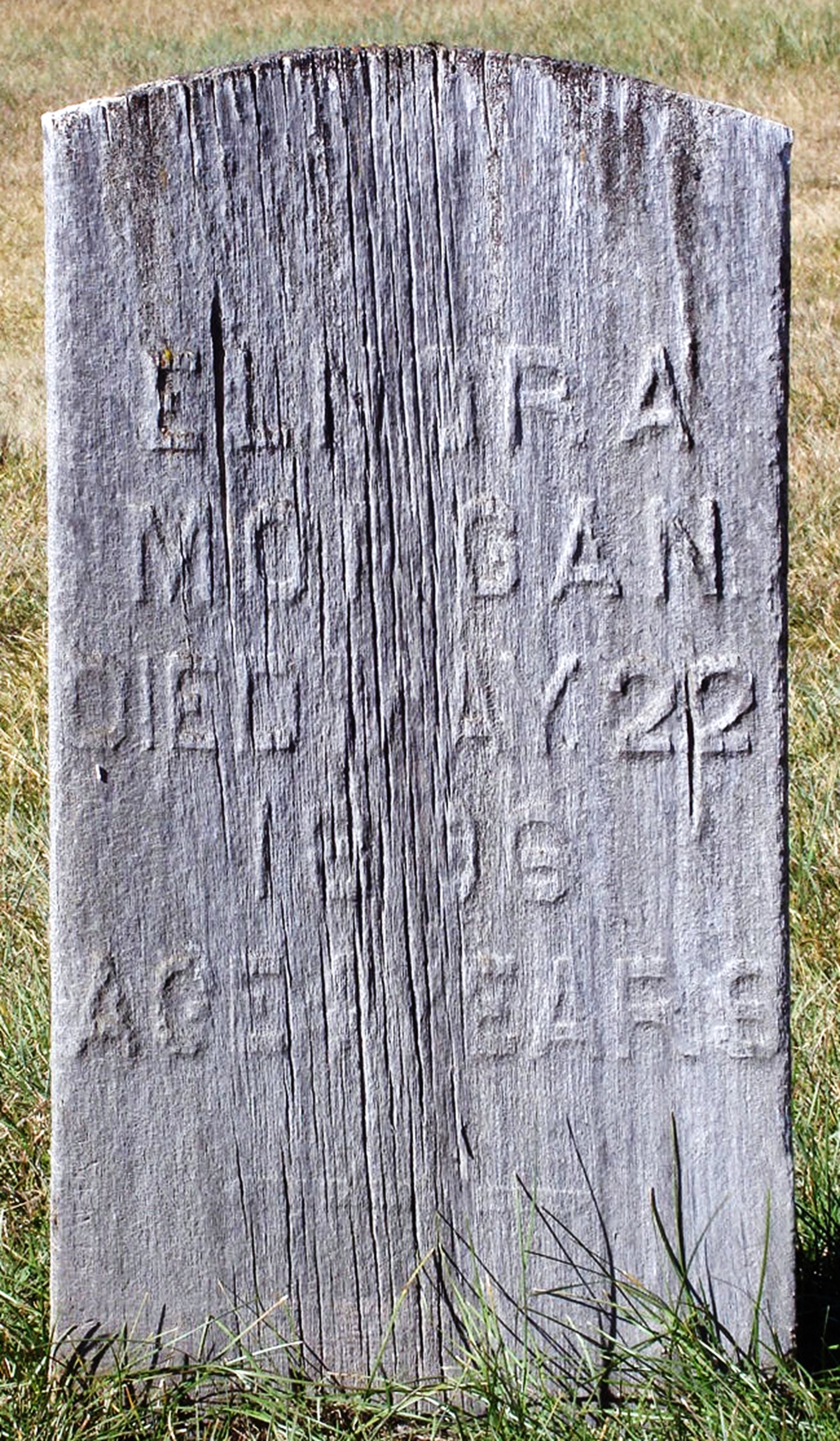 Elnora "Nora" Morgan and John William "Johnny" Morgan are buried in Missoula Cemetery, Missoula, Missoula Co., MT. The grave markers are made from wood.