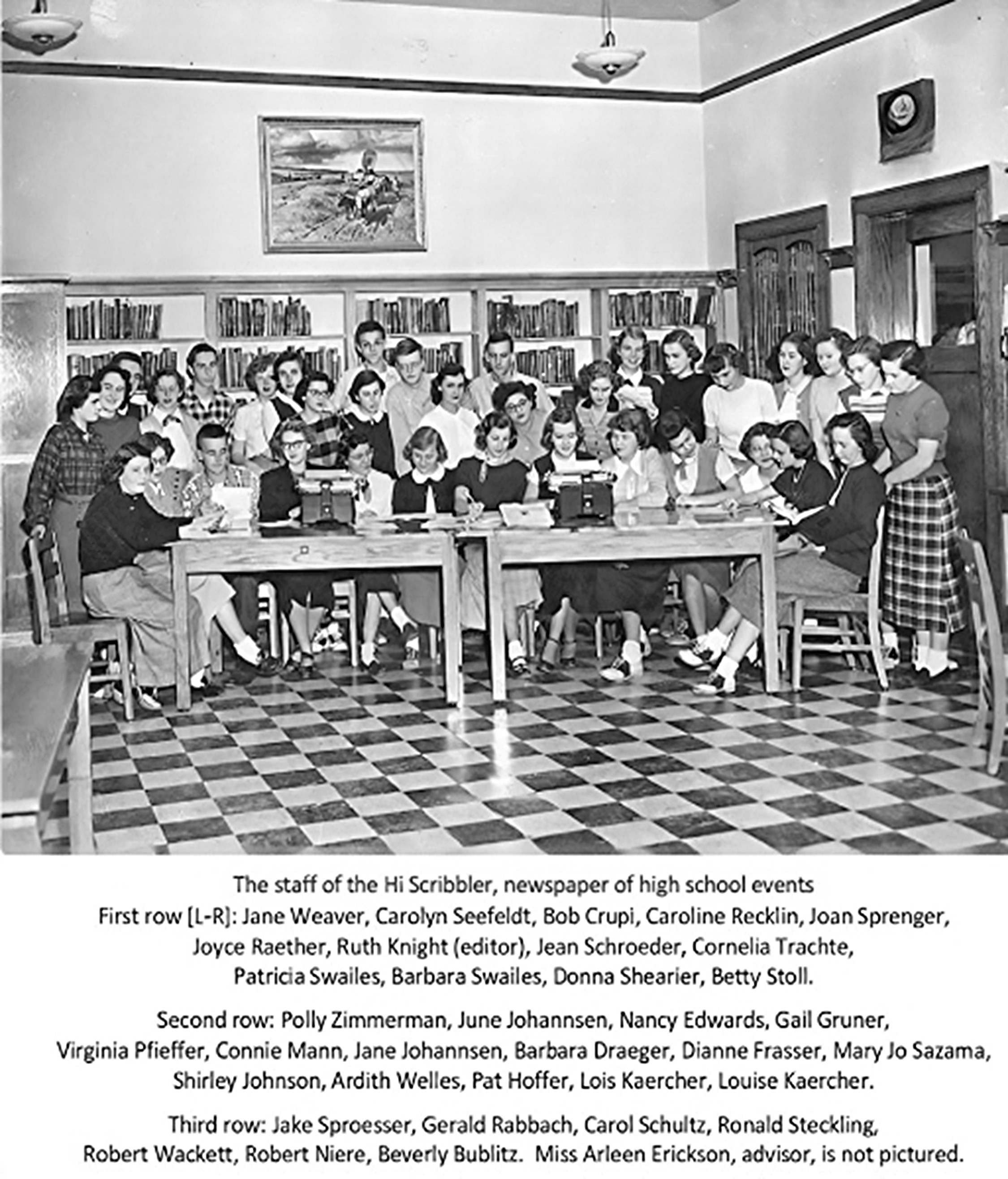 Watertown High School, Watertown, Jefferson Co., WI HI SCRIBBLER Newspaper Issues 1954 - 1959 Click here to go back to Watertown High School Class of 1959 Main Page. Click here to go to the leighlarson.com Home Page. The HIGH SCRIBBLER was a newspaper published monthly as an extra-curricular activity by the students of Watertown High School. Many issues from the years 1954 through 1959 are missing, but some of the survivors are contained in the PDF images below. The first mention of the Hi Scribbler was in the March 21, 1947, issue of the Orbit yearbook. A new activity which gives excellent experience in journalism to the members of the staff is the birth of our new school newspaper, "Hi Scribbler". The faculty advisor, Mr. Hanish, having taken great patience with its development, is responsible for its success. The first Orbit appearance of a Hi Scribbler Staff picture (above) was on page 77 of the 1951 WHS Orbit yearbook. March 26, 1954, Volume XI, No. 5 October 14, 1955, Volume XIII, No. 1 February 16, 1956, Volume XIII, No. 4 March 16, 1956, Volume XIII, No. 5 November 30, 1956, Volume XIV, No. 3 December 21, 1956, Volume XIV, No. 4 April 26, 1957, Volume XIV, No. 7 June 3, 1957, Volume XIV, No. 8 October 4, 1957, Volume XV, No. 1 January 31, 1958, Volume XV, No. 4 February 28, 1958, Volume XV, No. 5 May 2, 1958, Volume XV, No. 7 June 2, 1958, Volume XV, No. 8 February 12, 1959, Volume XVI, No. 4 March 24, 1959, Volume XVI, No. 5 |