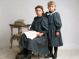 Alora M. "Laura" Mayfield Mayfield and Kathryn R. "Kittie" Mayfield, Richland Center, Richland Co., WI, about 1899. The William J. Hillman Studio, Richland Center, Richland Co., WI.