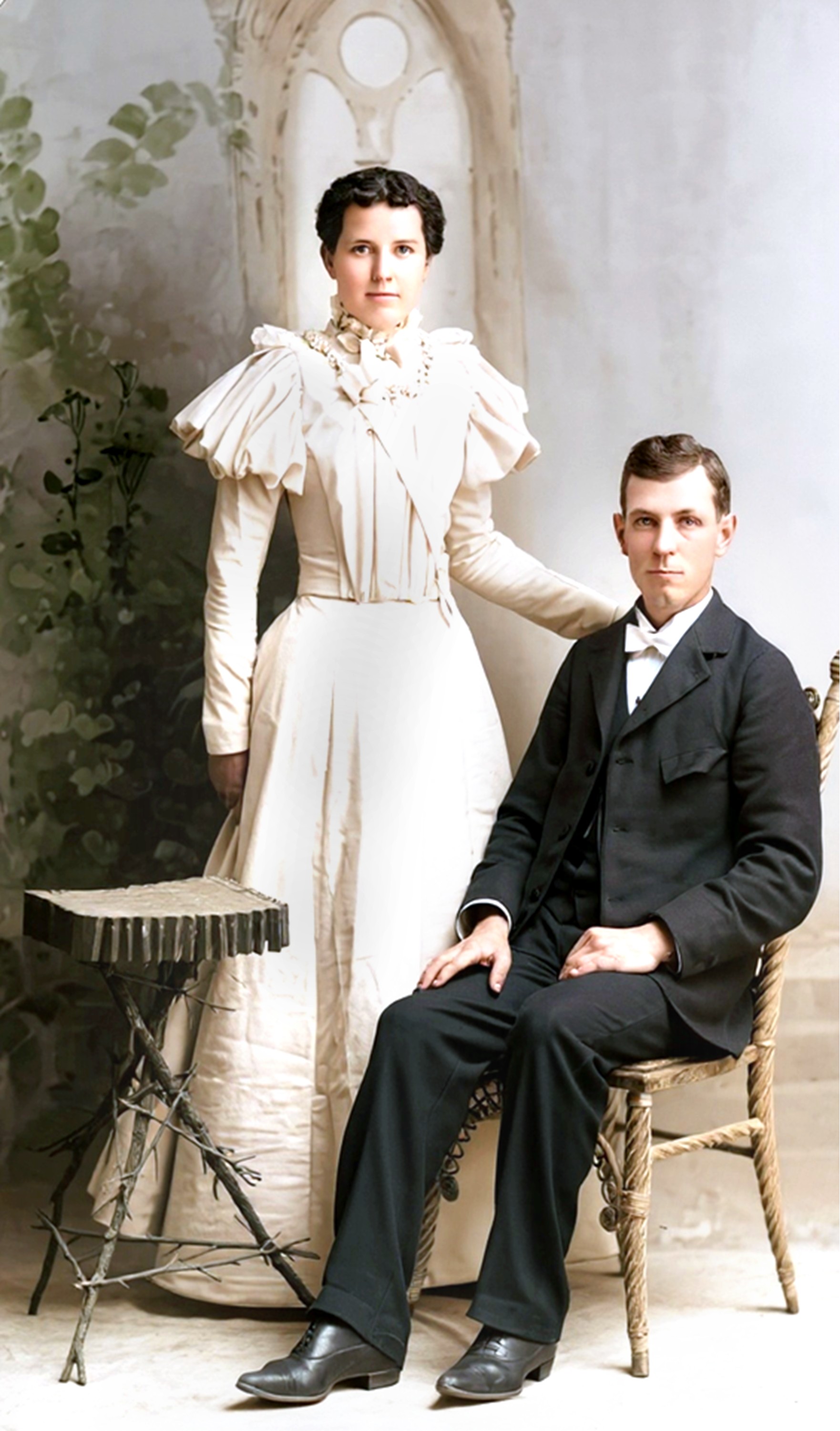 Iva May "Ivy" Abbey and Cyrus Lawrence Mayfield, Richland Center, Richland Co., WI, about the time of their marriage, April, 1899. Leonard Studio, Richland Center, Richland Co., WI. Thanks to the Trace family for making this image available.