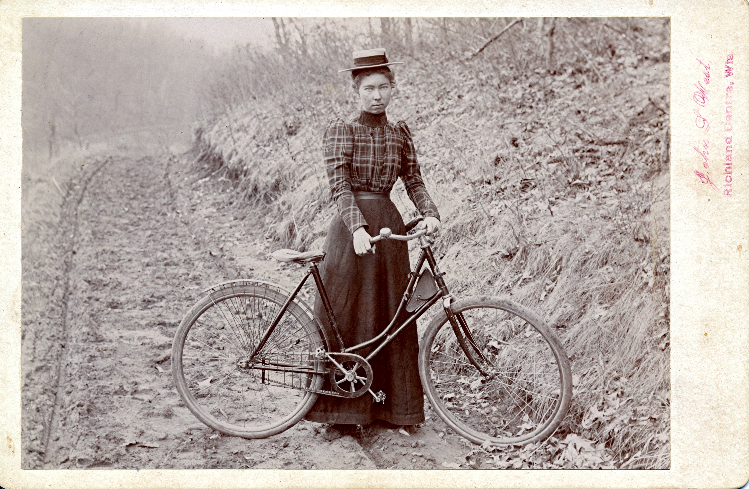 However, it could also be Alice Mary McNelly, with her bicycle, Richland Co., WI, about 1905.