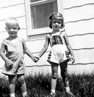 Cousins: Back Row: Cindy Gustafson, Barry Wetzel, Vanessa Dolce, Kay Wetzel, Douglas Lang. Front Row: Kim Wetzel, Mike Dolce, Dean Lang, David Lang, Gary Dolce, Diane Lang, Jan Gustafson. Photo taken Alice's house, Beulah, Mercer Co., ND, 1959. Photo courtesy of Kay Koslan.