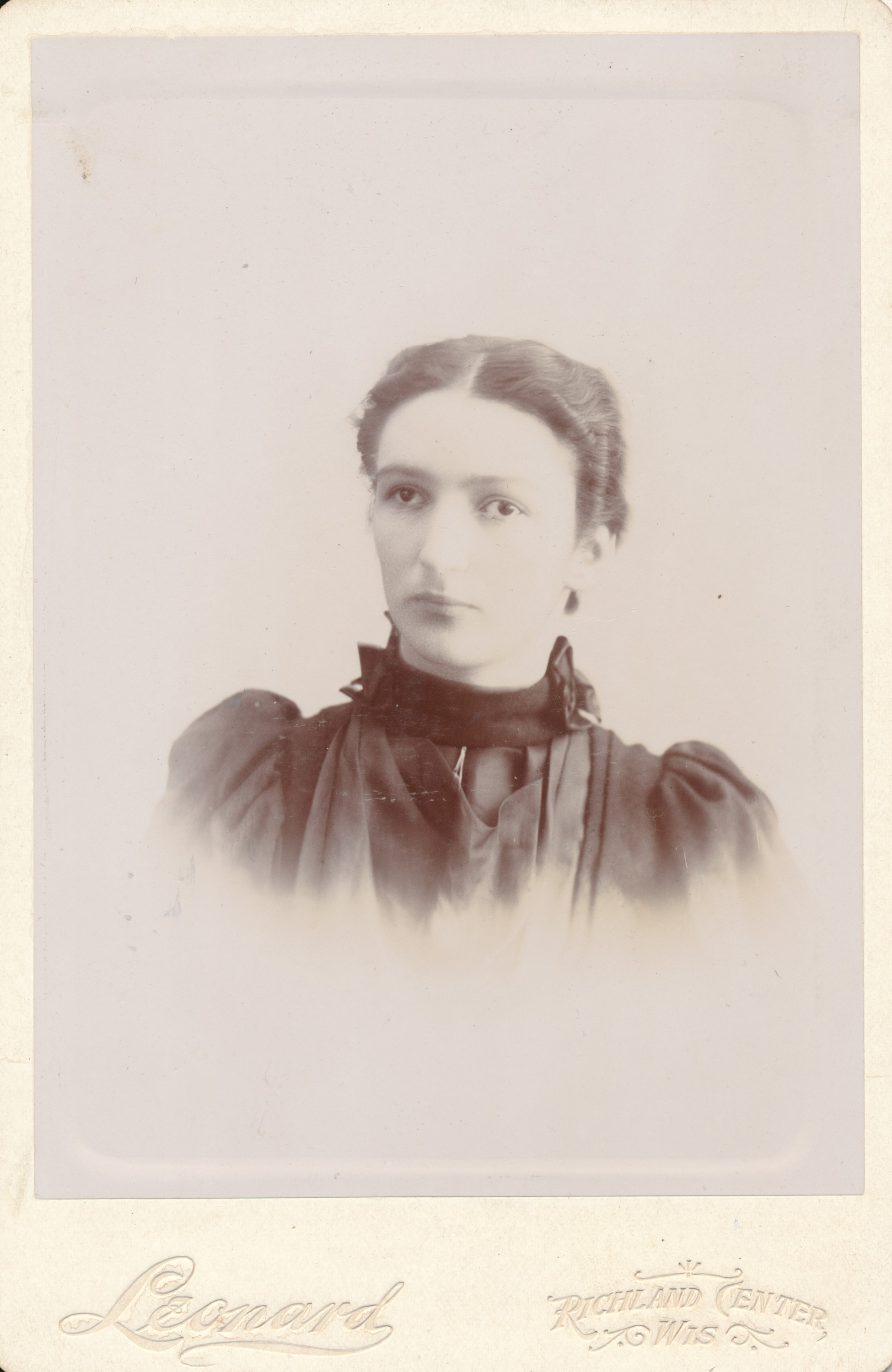 This is probably Mary Maude Abbey, Richland Center, Richland Co., WI, about 1898. Thanks to the Trace family for making the original picture available.