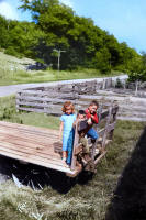Leigh Larson, Sherry Indestad and Reed Larson, Larson farm, Town of Farmington, Waupaca Co., WI, 1946.